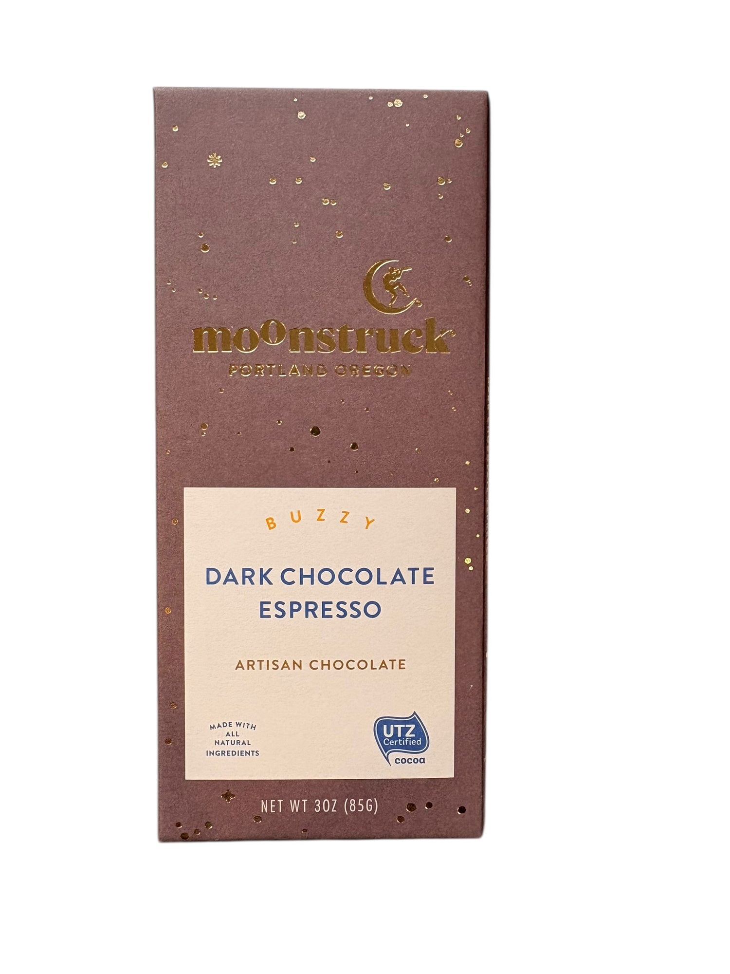 Awaken your senses with the bold intensity of the Moonstruck Dark Chocolate Espresso Bar. Crafted in Portland, Oregon, this artisan chocolate bar blends rich dark chocolate with real espresso coffee beans for a deep, slightly bitter, and beautifully balanced flavor experience.